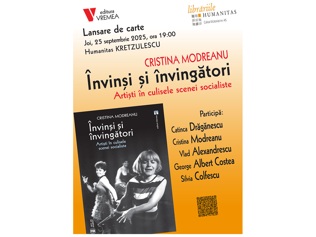 Editura Vremea dă startul sezonului de lansări al toamnei cu o carte revelatoare: Învinși și învingători. Artiști în culisele scenei socialiste, de Cristina Modreanu. Apărut în colecția Fapte Idei Documente, volumul aduce sub ochii cititorului o pagină mai puțin cunoscută din istoria teatrului românesc – contribuția artistelor și a artiștilor queer. Evenimentul are loc joi, 25 septembrie 2025, ora 19:00, la Librăria Humanitas Kretzulescu, cu participarea unor invitați de marcă.
